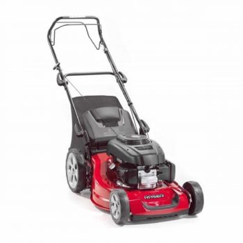 Auto choke, steel deck, safety blade brake, big wheels and combined grass bag.